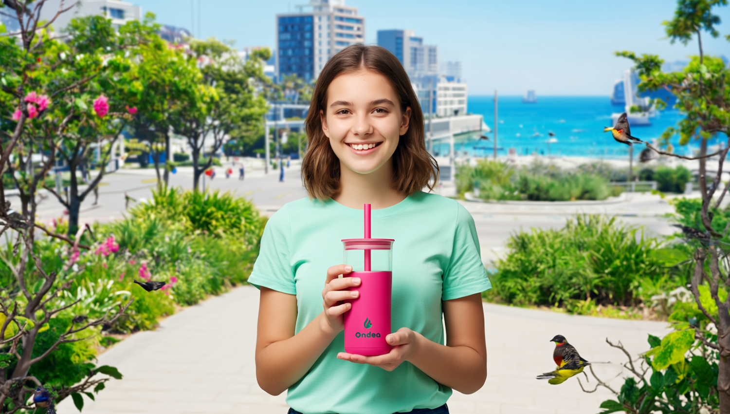 Camille, étudiante passionnée par l’écologie, en avait assez des bouteilles en plastique qui polluaient son campus… et constatait chaque jour que la planète entière en souffrait, des rues aux océans. Elle a créé Ondéa Thermo pour offrir un gobelet pratique, durable et élégant, permettant à chacun de rester hydraté tout en protégeant la planète. Un petit geste quotidien, un grand pas pour l’avenir.